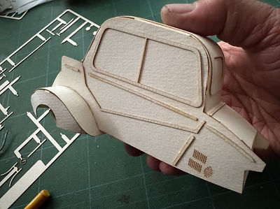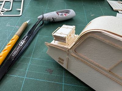 コックピットの上部分、屋根・窓のパーツの取り付けになります。